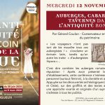 Conférence Mercredi 12 novembre 18h Entrée libre Autour de l’exposition : L’Antiquité au coin de la rue. Voir et percevoir l’espace public gallo-romain » jusqu’au 8 mars 2025. « Auberges, cabarets et tavernes dans l’Antiquité romaine » Par Gérard Coulon, Conservateur en chef honoraire … Lire la suite